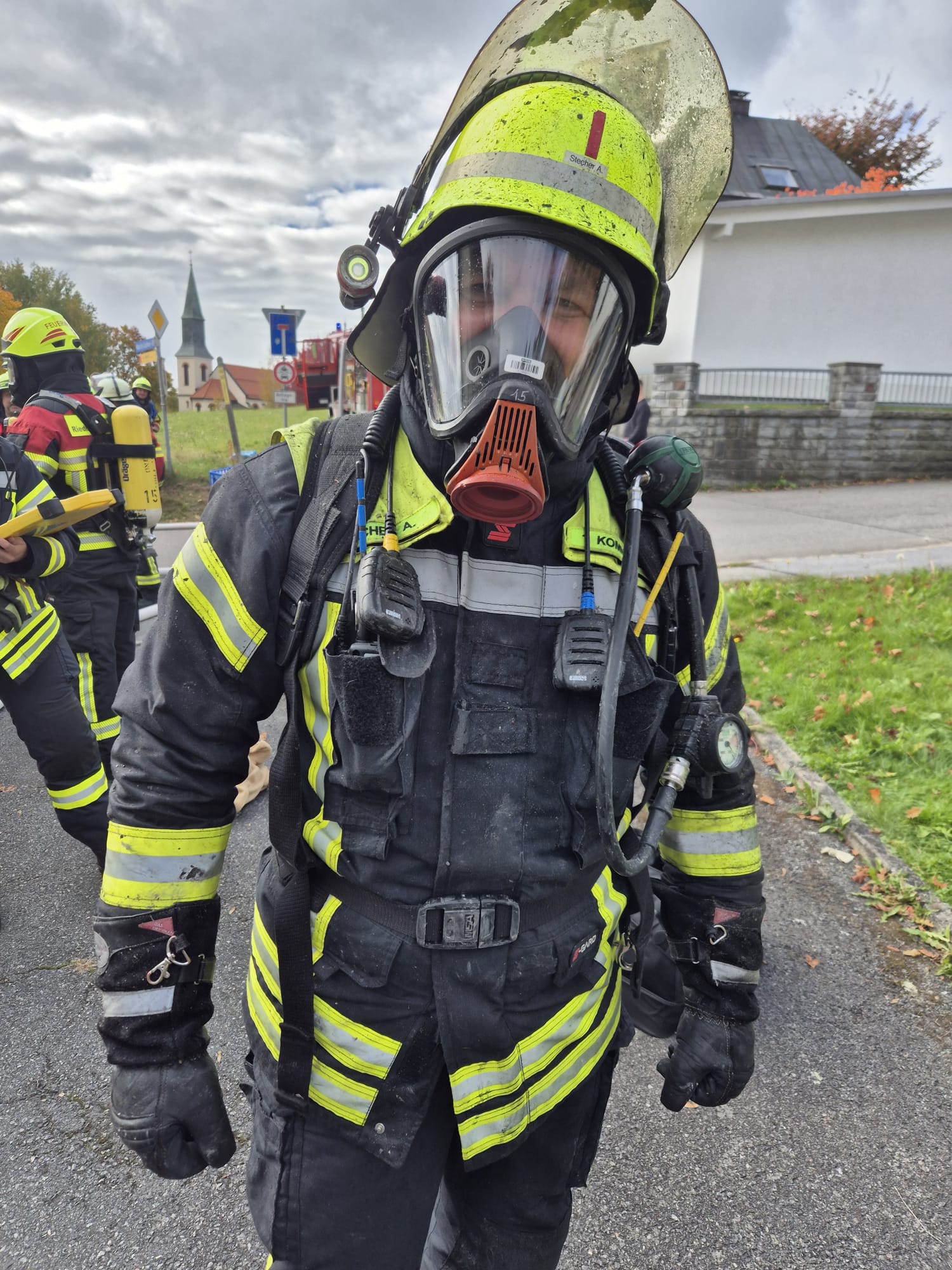 Meldung: Schwarzer Rauch aus der Wohnung, Mitteiler vorm Haus
